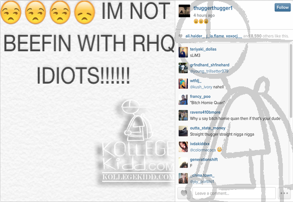 “IM NOT BEEFIN WITH RHQ IDIOTS!!!!!!” a message he posted onto IG.