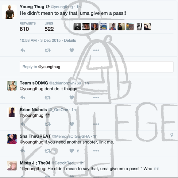 “Homie yo lil career almost OV !!!” Thug wrote on Twitter.