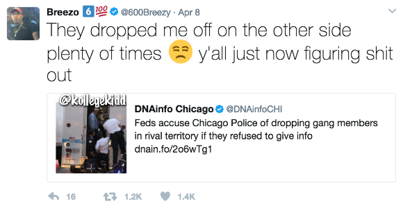 Shocking information recently surfaced revealing Chicago Police Officers putting suspected gang members in harm’s way by dropping them off in rival gang territories. 600Breezy took to Twitter to react to this news, saying he was once a…