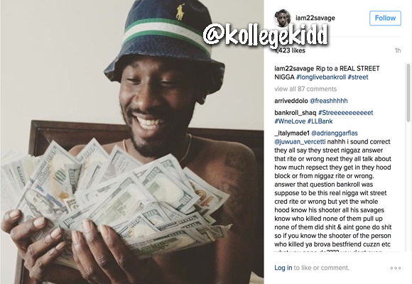 #21savage disses #22savage ? A video posted by Kollege Kidd (@kollegekidd) on Jan 8, 2017 at 8:09pm PST 21 Savage isn’t going to let 22 Savage get clout off of him. “B***h a– n****s remind me of…